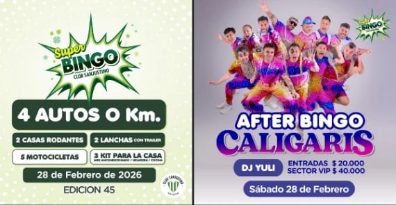El esperado evento del Bingo del Club Sanjustino ya tiene fecha confirmada para su jornada de sorteos: será el próximo 28 de febrero. Desde la Secretaría del Club informaron que el valor del cartón es de $110.000 y advirtieron que quedan pocos ejemplares disponibles.