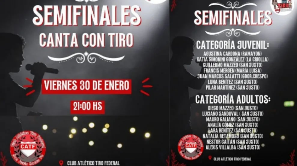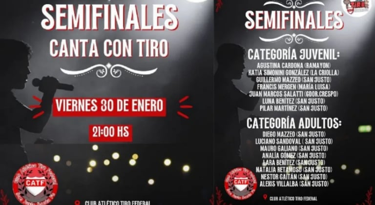 La ciudad de San Justo se prepara para vivir una de las jornadas más intensas del calendario cultural local. El próximo viernes 30 de enero, las instalaciones del Club Atlético Tiro Federal (CATF) recibirán las semifinales de "Canta con Tiro", la competencia que busca consagrar a las voces más destacadas de la temporada 2025/2026.
