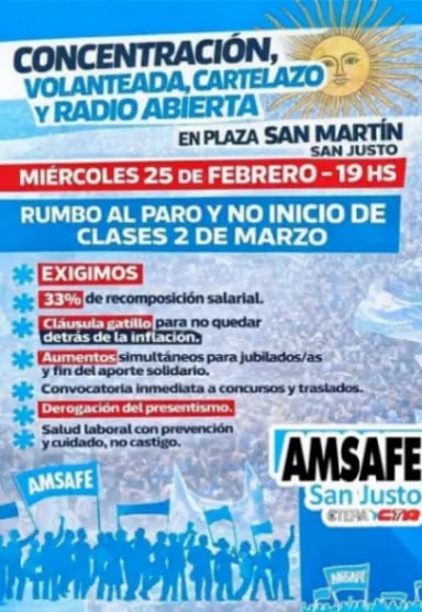 Uno de los puntos centrales del reclamo es la clarificación de las escalas salariales. Según AMSAFE San Justo, un maestro de grado cobrará $1.037.205,23 recién en el mes de junio. Ante este escenario, el sindicato exige específicamente una recomposición salarial del 33% para evitar que los ingresos queden rezagados ante la evolución de los precios.