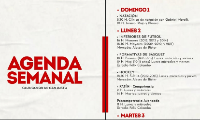 El Club Colón de San Justo definió su cronograma de actividades para el inicio de febrero de 2026, marcando el regreso a los entrenamientos de sus principales categorías. La agenda deportiva comenzará este domingo 1 de febrero con una fuerte apuesta a la natación competitiva en las instalaciones del club.
