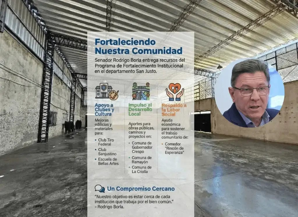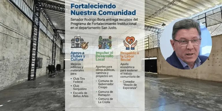 En el marco de su habitual recorrida por el departamento, el Senador Rodrigo Borla concretó la entrega de aportes económicos y materiales a diversas instituciones de la sociedad civil, clubes y gobiernos locales. Estas acciones forman parte del Programa de Fortalecimiento Institucional (PFI), diseñado para apuntalar el crecimiento de las entidades intermedias de la región.