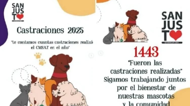 El balance del año 2025 en materia de salud pública veterinaria arroja resultados sumamente positivos para San Justo. Según los datos oficiales del Centro de Sanidad Animal y Zoonosis (CMSAZ), se realizaron más de mil castraciones gratuitas, consolidando una política pública que busca el equilibrio poblacional y la prevención de enfermedades.