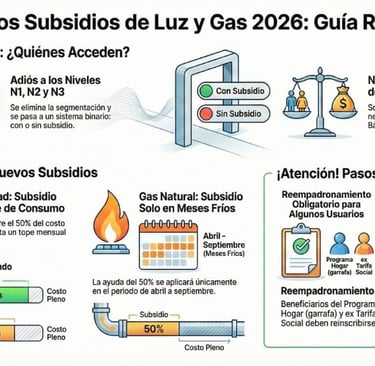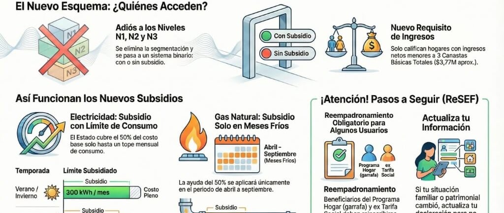 Gas Natural: El esquema se vuelve estacional. El subsidio del 50% solo se aplicará en los meses de frío (abril a septiembre). Durante el resto del año, todos los usuarios residenciales deberán abonar el costo pleno del servicio.